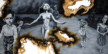 Eric Whites hyper-intensive, distortedly lucid paintings explore the shifting boundaries between beauty and horror. Developing out of the artists fascination with the illusionary properties and constructions of film, the paintings in Motion Pictures examine the varying layers of human perception by manipulating planes of focus, form, and color. Designed to approximate the ratio of the cinemascope film frame, they are larger in scale than Whites previous work and stunning in their visual impact. Accompanying the exhibition is Eric White: Blue Folds of Skin, the newest in Smart Art Presss Pinspot Series of artists books. An informal and unrestricted journey through the warped pages of the artists sketchbooks, the book combines grotesque drawings, obscure texts, dream recollections, and amateur poetry to explore themes of paranoia, metaphysics, eroticism, nostalgia, and joy. Eric White at Smart Art Press |