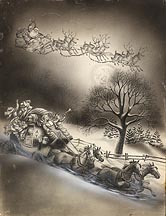 Untitled (Santa and reindeer flying over a stage coach)